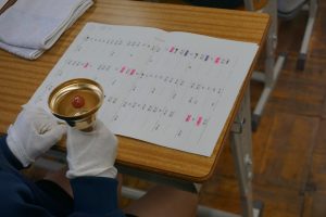 11月14日(金)の音楽会に向けての取組が始まりました。7月中旬に曲を決め、指揮者・伴奏者を募集。楽譜を製本してスタートしました。取組は18回。途中に中間交流会があります。合唱が苦手な生徒もいることでしょう。そんな中でも互いの努力を認め合ったり、仲間を支えたりすることを通して、学級の文化および学級目標の具現を目指します。支援学級は今年もハンドベルを披露。聞いたことがあるメロディーが聞こえてきました。