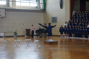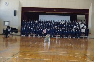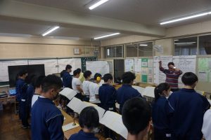 音楽会の取組も10回目を迎えました。昔に比べて練習時間数は少ないですが、その中でできることを自分達で考えて動いています。自治力を高める学級・学年・学校(生徒会)づくりは今年度の重点でもあります。学年合唱練習では、音楽科の三宅先生の指導を受け、曲に込められた想いを確認すること、ワードを大切にすること、抑揚のつけ方を工夫することなど短時間で変化がありました。200人以上で歌う合唱には迫力があります。30日(木)の中間交流会ではその途中経過を発表します。