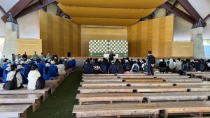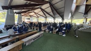 可児市の5つの中学校特別支援学級の仲間が集まり、ぎふワールド・ローズガーデンで研修を行いました。蘇南中学校の佐野校長先生から「バラの香りは好きですか?たくさんのバラが咲いていますが、どんな香りがするのでしょう。バラにはそれぞれに名前がついています。好きなものを探してみましょう。」と話がありました。1日の中での大きな成果は、各学年で友達ができたことです。見つかった『ルールを守る』という課題を再度みつめていきます。