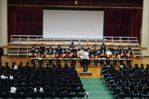 <3年生>中間とは思えないほどみんなの姿勢が素敵でした。合唱はもちろん、それぞれのクラスの曲調にあった良さが出ていたし、学年はさすがの迫力で感動しました。