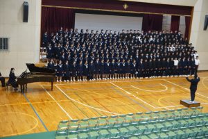 <2年生>昨年度の合唱に比べて、声量が増しているクラスが多く、特に欠席が多かったクラスも他に負けない声量が出ていたように感じました。伴奏の子も難しい曲を頑張って弾けていましたね。学年合唱も素晴らしいと思いました。