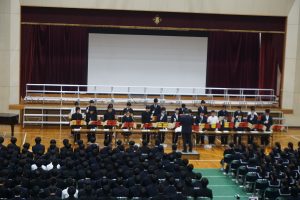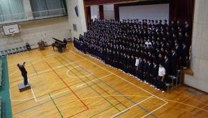 【全体を通して】練習のときは、うまくいかなくてリーダーにとっては、悔しい思いをしたり、思うようにいかなく悩んだりしたこともあったかもしれません。でも、今日の演奏を聴いて、それをみんなで乗り越えてきたことが伝わってきました。合唱は、みんなでつくる音楽です。一人ひとりの声が集まって、ひとつの大きな“作品”になります。だからこそ、仲間と気持ちを合わせることが何より大切です。どのクラスも聴いている人にがんばった気持ちが伝わりました。(審査員)