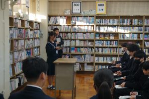 8分半に及ぶ力強い演説でした。3年生クラス委員から2年生クラス委員への熱いメッセージ。「今のあなたたちは真のリーダーと胸を張って言えますか?今のあなたたちには引き継がせられない」1年前、卒業した先輩からのこの言葉で現3年生は変わったと。2年生リーダーがじっと聞く姿から、自分の役割に覚悟をもち、真のリーダーとして歩みだす第一歩を感じました。2月の伝統を引き継ぐ会までにさらなる実績をつくります。