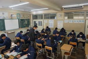 今月4日から10日まで、全国では『人権週間』と定められています。中部中学校では毎年この週間に合わせて、生徒作文をもとに全校で人権について考えています。人権感覚は一朝一夕に育つものではありません。毎日の生活の中で、自分とは違う様々な人と触れ合い、様々な事を感じて考える中でしみついていくものだと考えます。うまくいかないこともきっとたくさんあるでしょう。その時に立ち止まって自分自身を見つめ直すいい機会になればと思っています。全校道徳の授業の最後に生徒達は「あたたかい言葉」にまつわるエピソードを真剣に考えていました。