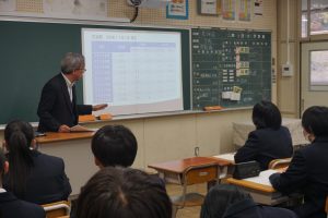 美濃加茂高等学校、明誠義塾高等学校の先生をお招きして、進路講話をしていただきました。高校卒業後に進学を考えている人、迷っている人様々ですが、今2年生のうちにつけておくべき力、そして社会(高校)に出てから求められる人物像について話がありました。どちらの学校も、目的意識をもって入学すること、今の日常生活を大切にすることの視点が入っていました。2年生にとってはまだ先の進路選択ですが、実はもうすでに始まっていることに気づき、残り4か月でやるべきことを明らかにできた講話でした。