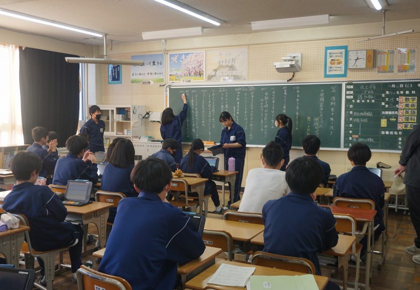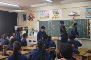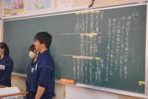 今年も残り2週間となりました。3年生はいよいよ卒業に向けてのカウントダウンです。後期前半の成果と課題を振り返る学活では、『さすが3年生』という場面を見ることができました。どの学級を見てもあたたかい雰囲気で話し合いが進んでいます。そして、仲間のよい姿の交流に終わらず、その裏にある『想い』を大切にした学活に見ごたえがありました。認められた生徒も自信をもって『想い』を語る姿から、ここまでの成長を感じます。義務教育終了に向けて咲き誇る3年生です。