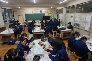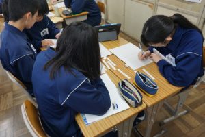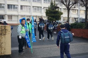今年の登校もあと1日になりました。朝のにこにこあいさつ運動に始まり、教科の年内最後の授業が行われていました。2年生数学では、「パン屋の謎を解け!!」と題して、これまでの学習を生かして班で協力して問題を解く姿がありました。また、冬場の部活動の時間を確保するため、カリキュラムを工夫して、少しずつでも部活動ができるようにしています。あいにくの雨でしたが、年内最終日ということもあり大掃除を行う部活もありました。25日ということもあり、サンタやトナカイが現れた学級も・・・