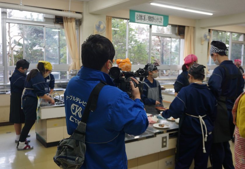 昨日調理実習の様子を紹介しましたが、ケーブルTVの方が取材にみえていました。「輝け!笑顔の子どもたち」というテーマで中部中学校のよさを広げたいという願いのもと取材をされました。午前中調理実習、昼はMSJリーダーズ、午後は掃除の様子を撮影しました。MSJリーダーズの代表3名は活動の様子を分かりやすく伝えていました。来週の生徒会の取材と合わせて、この様子は2月に1週間放送予定となっています。