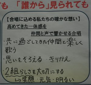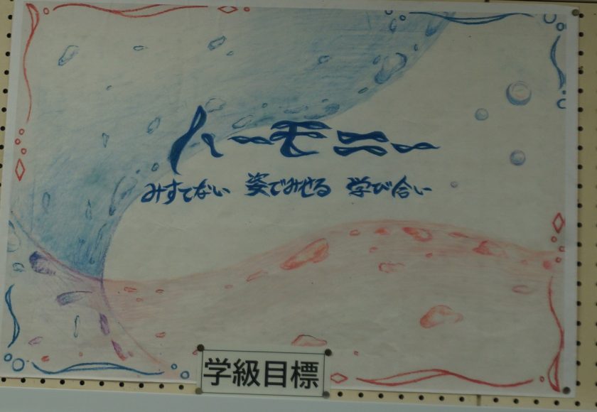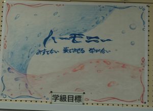 学級目標の『ハーモニー』、担任の先生の願い『楽笑(がっしょう)』を達成するために、どんな事も笑顔で取り組んできました。音楽会では笑顔で歌い、授業中は仲間が笑顔になるような楽しく、でも真面目な学び合いをしてきました。笑顔で卒業するために、これからの日常も仲間とのかかわりを大事にして頑張っていきます。