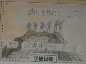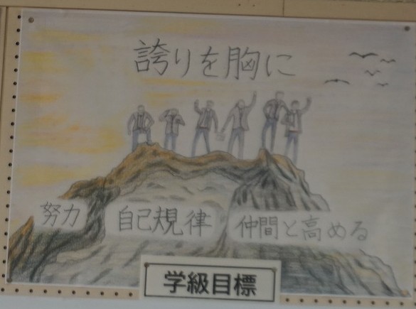 誇れる姿は特に『団結力』の部分です。体育大会では、すぐに練習に取りかかるために、前もってハチマキを配ったり、素早く移動したりする姿がありました。ここで高めた姿は、日常で発揮しています。例えば、合唱の時間では一人一人が真剣に歌う姿が見られたり、すぐに合唱隊形に並ぶ姿があります。卒業までにこの『団結力』を生かして、もっと仲間との絆を深め、最後みんなが胸を張って卒業できるようにしたいです。