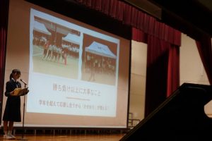 <当日:その3 1年生発表>何度も練習した成果が出て、6年生に分かりやすく1日の流れを伝えることができました。