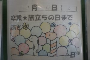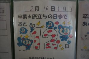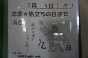 3年生の教室にカウントダウンカレンダーが貼ってあります。日に日に日数が減り、ついに一桁になりました。残り数日で3年生がいなくなると思うと寂しいですが、安心して後輩たちに今後を任せられるような中部中をめざします。