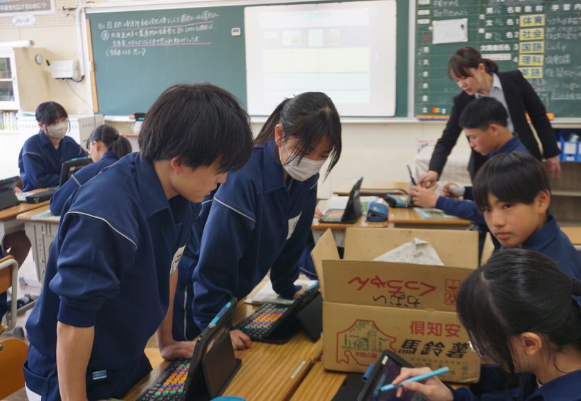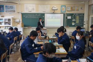 2年2組の社会の公開授業がありました。1年間のまとめで「北海道の農産物が生産量を多く占めている理由を考えるとともに、そこにある生産者の工夫や思いを考える」授業でした。実際に取材をした方が育てたじゃがいもも登場しました。2年生の学ぶ姿に感心です。資料からの読み取り、交流、発表と仲間と考える中で思考が深まっていきました。学校生活の大半を占める授業で力をつけるためには、仲間とのかかわりは欠かせません。