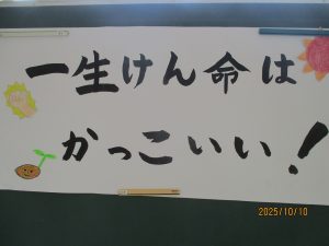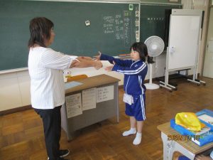 校長先生から、人命救助をした子たちの紹介がありました。体調の悪い方を見つけ、もっていた服を下に引き、周りの人に助けを求めたそうです。助けた方から学校に連絡がありました。
