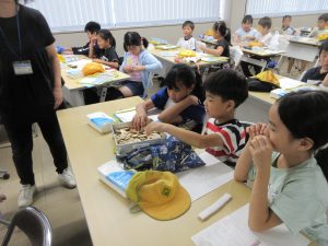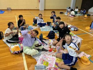 その後,久々利地区センターにバスで移動をして,お昼ご飯を食べました。「先生,見て!」と,お弁当を自慢げに見せてくれる子がたくさんいました。準備をしていただき,ありがとうございました。
