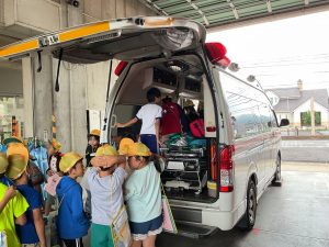 10月16日には,バスに乗って校外学習に出かけました。「中消防署」では,火災や救急の現場に一刻も早く駆け付けるために,入念に準備をしていることが分かりました。実際に出動する瞬間にも立ち合うことができ,緊張感を肌で感じることができました。