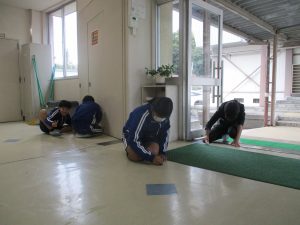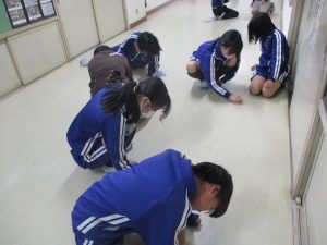 環境委員会の活動を紹介します。今日は、明後日に控えた授業参観に向けて、廊下の細かなところを掃除しました。