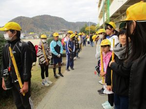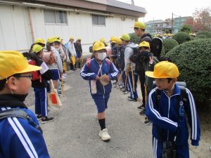 長いあいさつロードができていました。校門から玄関までたくさんの子が立ち、あいさつロードが50メートル以上ありそうです。