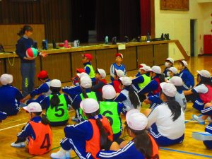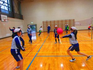 6年生はバレーボールの練習をしていました。
