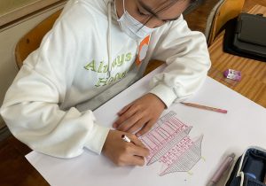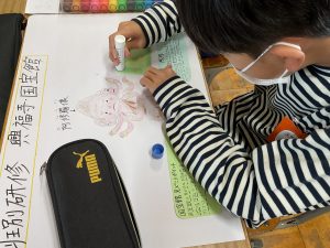 学んできたことを5年生に伝えるために、グループごとにポスターにまとめています。