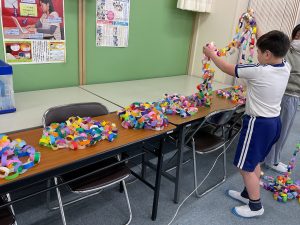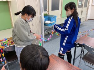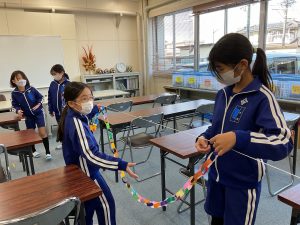 執行委員のみんなが全校の輪を繋げてひびきあい集会の準備をしていました。こんなに長い輪になるとは!!