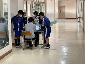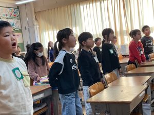 放送室前では、歌声委員会の子たちが、各学年の歌声を聞いてよかったことを報告していました。