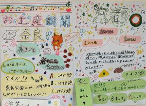 訪れた東大寺や金閣寺の歴史や見どころ、お土産の紹介など、タブレットで調べた情報をもとに、一人ひとりが記事を書きました。