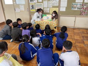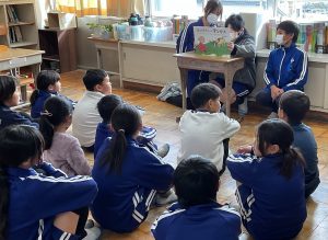 聞いていた子どもたちは、絵本の場面に合わせて笑ったり、身を乗り出して見入ったりと、とても楽しそうに参加していました。6年生にとっても、自分たちの読んだ本で下級生が喜んでくれたことが、大きな達成感につながったようです。