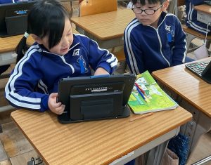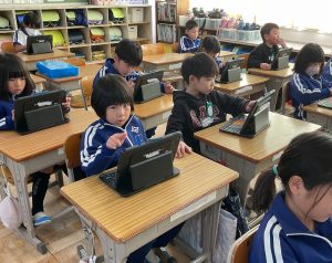 1年生は、毎日の学習の中でタブレットの基本的な操作に少しずつ慣れてきました。最近では、自分で起動して、操作もとてもスムーズになっています。