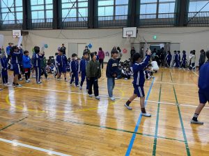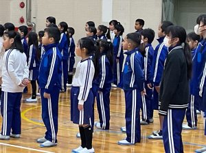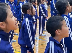 全校児童は、6年生への「ありがとう」の気持ちを込めて、一生懸命に歌声を響かせました。