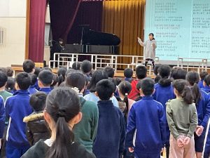 今日は、全校で「歌声集会」を行いました。