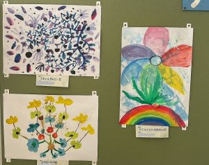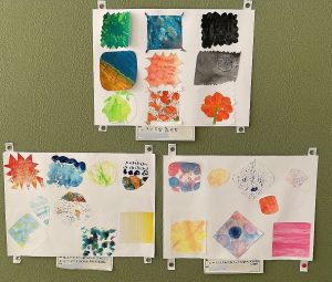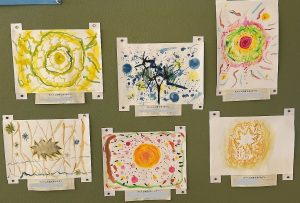 土田小の廊下に「アートギャラリー」があります。各学年の作品が展示されています。