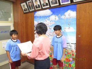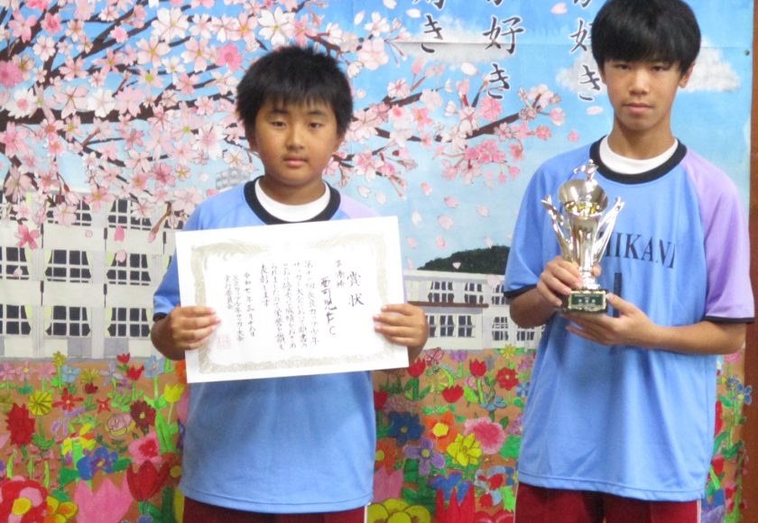 昼休みの放送で西可児FC(サッカースポーツ少年団)の表彰を行いました。