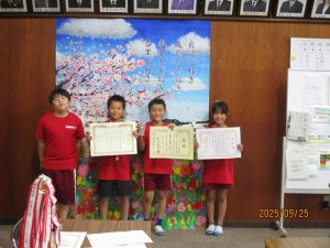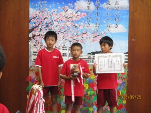 4月から9月までの前期の大会でがんばった成果を表彰しました。1年生 3年生 4年生 5年生 6年生 それぞれが練習をがんばった成果がうかがえました。