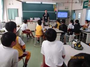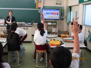 4年生が可児市福祉協議会の方を講師を招き、高齢者疑似体験を行いました。