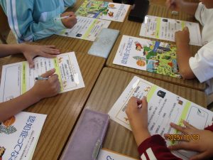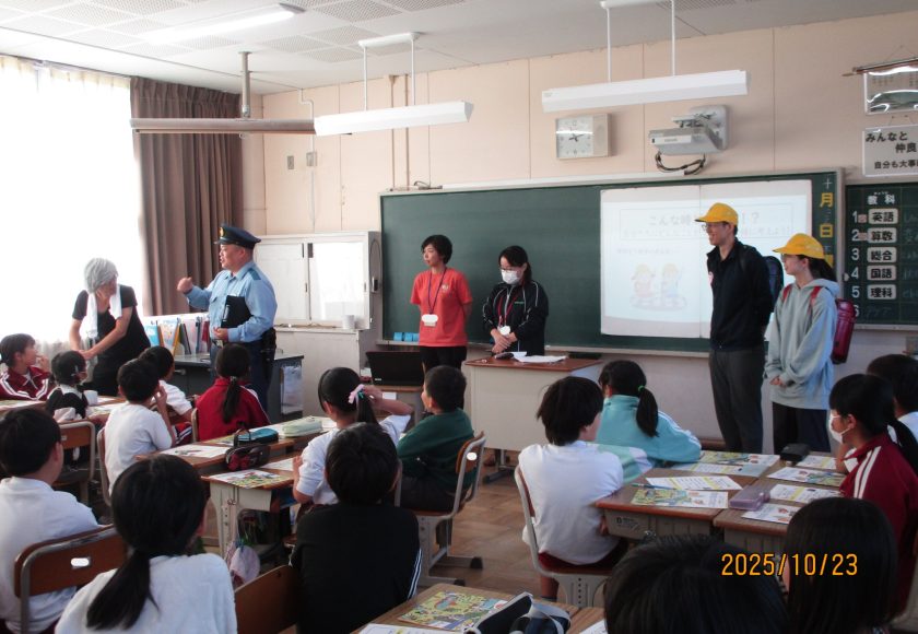 4年生が総合学習で福祉について学んでいます。今日は、福祉協議会の方、春里交番の方、地域包括支援センターの方から認知症について教えていただきました。