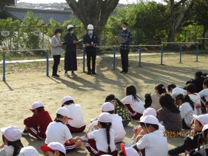 今年度2回目の避難訓練がありました。今回は体育館や図書室、音楽室などの特別教室からの避難経路を確認しました。理科室からの出火という想定だったので、どこを通って逃げることが安全かを考えて避難するという訓練です。静かに落ち着いて避難することができました。最後に教頭先生から「自分の命は自分しか守れない」というお話を聞きました。地震がおこるとどんな困りごとがおこるかということについても周りの子と話をすることで自分のこととして考えることができました。