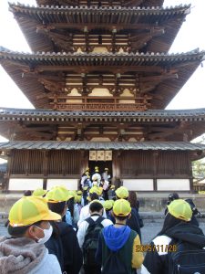 1日目は奈良見学でした。法隆寺と奈良公園内の見学でした。見学場所ではどの子も一生懸命ガイドさんのお話を聞いてメモをとっていました。奈良公園は1グループに1人ずつガイドさんがついての班別研修でした。東大寺や二月堂、春日大社などそれぞれの班が計画した場所を見学しました。宿に向かう前におみやげを買う時間がありました。たくさん歩いて疲れているはずなのに元気いっぱいでした。悩んで悩んでおみやげを選んでいました。宿でもマナーを守り、どの子も楽しく過ごすことができていました。