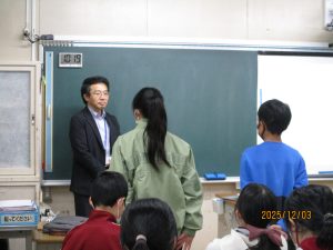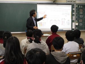 中電ウィングの方に来ていただき、SDGsの取組についてのお話を聞きました。いちごファームでいちご栽培を始めた1年目はたくさんの廃棄いちごが出てしまったそうです。それを何とかするためにファーム職員みんなで考え、工夫し、加工品づくりに取り組んでいらっしゃることが分かりました。「あきらめずに挑戦すること」の大切さを話してくださいました。現在、ドローンとロボットを使った輸送方法実施に向けて努力されているそうです。障害をもった方との共生社会の実現という取り組みもすてきですが、次々と新しいことに挑戦しつづけているということがすてきだなと思いました。