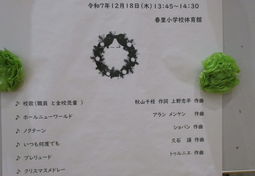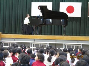 担任の先生が見事にピアノの弾く姿に驚きの声とあこがれのため息が混じっていました。一緒に歌った校歌、アンコールの先生たちの合唱。忘れられない春里小の一コマになってくれたらうれしいです。