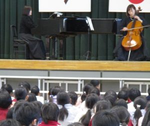 ハープの演奏、チェロの演奏、ピアノの連弾、ピアノのソロ演奏など どの演奏もすばらしかったです。知っている曲が演奏されると思わず曲に合わせて体を動かしたり、一緒に口ずさんだりする子供たちの姿がありました。楽しんでもらえて本当によかったです。