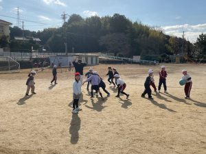 「みんなでやろ!」「あそびにいれて!」と寒さに負けじとみんなで仲良くあそんでいますね。