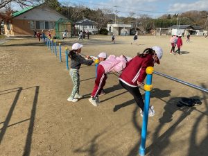寒い日が続いていますが、休み時間になると外で元気に遊んでいます。