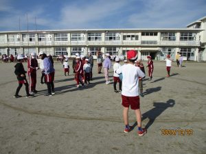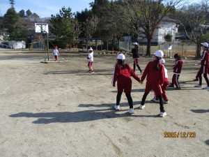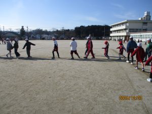 ロング昼休みにSFがありました。これは1年生から6年生までがグループを作って一緒に遊ぶことです。今日はぽかぽかとあたたかいよい天気だったので、外遊びには絶好の天気でした。