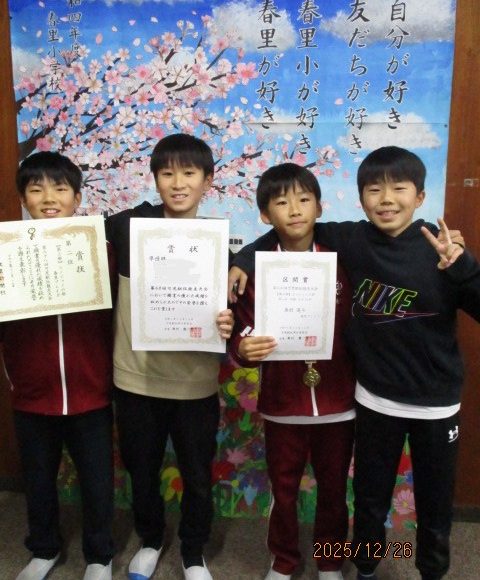 この大会には誘い合ってチームを組んで出場したそうです。4区で区間賞をとった子もいました。大会は少し前に行われたのですが、その時に3位になったことを校長室まで知らせに来てくれました。西可児中の駅伝部も今年は県に2位になったと聞きました。4人もあと2,3年後には駅伝部のメンバーになっているかもしれませんね。楽しみです。