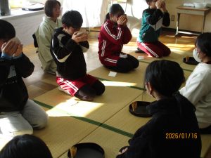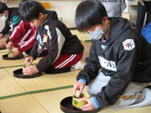 干菓子をいただいたあとに、お抹茶をいただきましたが、子どもたちには少し苦かったようですが、お抹茶を点てて、飲むという体験はとても心に残ったようです。