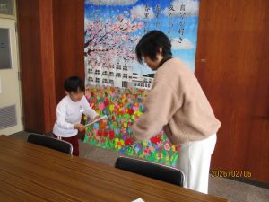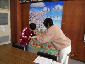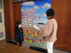 入選3人、優秀賞3人でした。進んで作品づくりに取り組んだことがすばらしいです。賞状と参加賞、優秀賞の3人には作品集がそえられていました。どの作品も明るい色づかいで描かれており、ほのぼのとするあたたかさが伝わってきました。