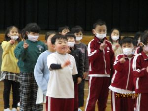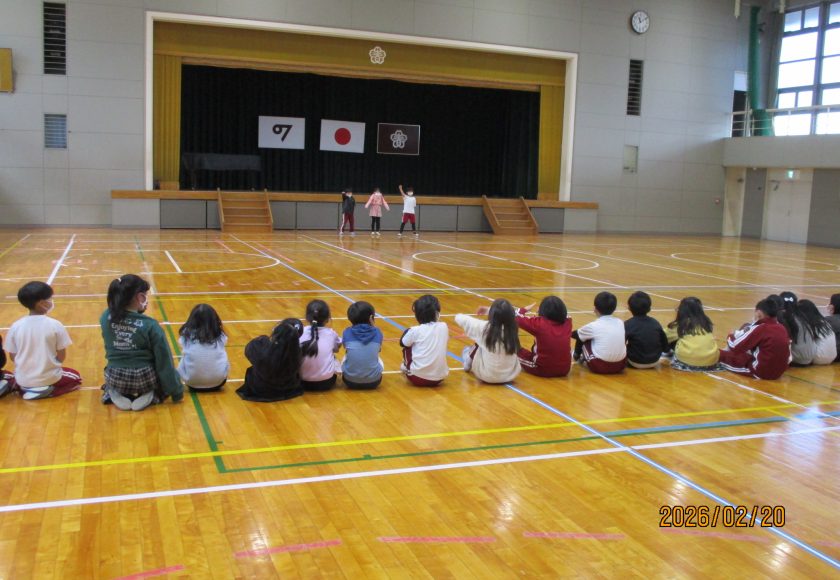 どの学年も会での出し物の練習を体育館で行っています。2年生は6年生の運動会での姿を思い出として再現していました。体育館は広いので、6年生に聞こえる声で発表するにはお腹に力を入れて大きな声を出すことが必要です。大勢の人の前で発表することもよい経験です。2年生全員からの歌のプレゼントの練習もありました。振りつけをつけて歌う姿がとてもかわいらしく2年生らしさが出ていました。「〇〇するともっといいよ。」という先生からのアドバイスに真摯にこたえてがんばる姿がすてきでした。本番が楽しみです。