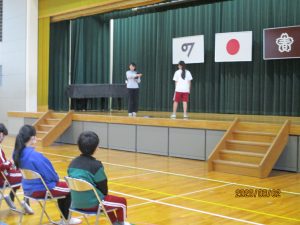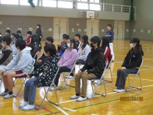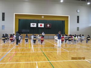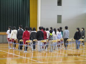 6年生の卒業式練習が体育館で始まりました。まずは卒業式という節目の行事を迎えるという心がまえをつくります。学年主任の先生の話を静かに集中して聞いていました。