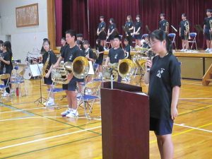 今日は、吹奏楽部による卒部演奏会が行われました。3年生は今回の演奏会が中学校生活最後です。多くの観衆の前で、立派に演奏しました。